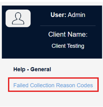 Select ‘Failed Collection Reason Codes’ to view a comprehensive list of failure codes along with detailed explanations.